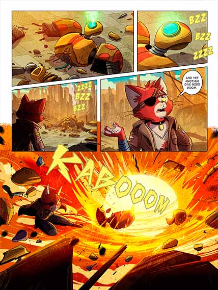 The comic tells the adventures of SYLVESTER ALONE, OUR LONE WARRIOR in the Desolated Lands of D’Albandona. It consists of a series of short volumes, each part of a greater story arc.